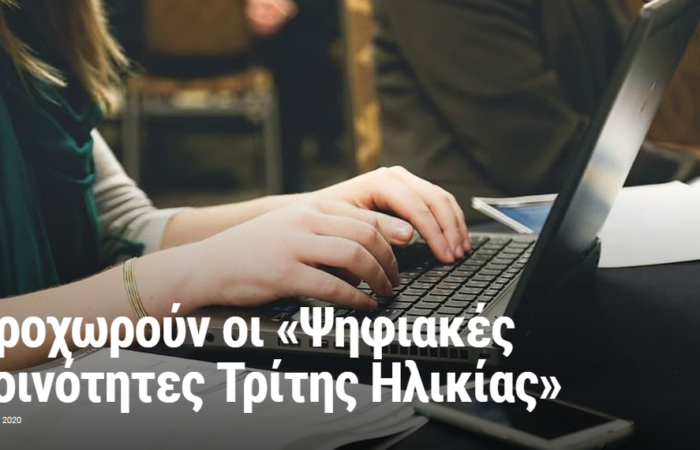 Εννέα στους δέκα ηλικίας άνω των 60 χρησιμοποιούν έξυπνα τηλέφωνα, αλλά μόνο τρείς στους δέκα είναι αρκετά εξοικειωμένοι με το διαδίκτυο. Αυτά και αρκετά ακόμα σημαντικά ευρήματα προέκυψαν από έρευνα της ΕΕΚΕ (Ένωση Εργαζομένων Καταναλωτών Ελλάδας) αναφορικά με τις Ψηφιακές Δεξιότητες της Τρίτης Ηλικίας,
