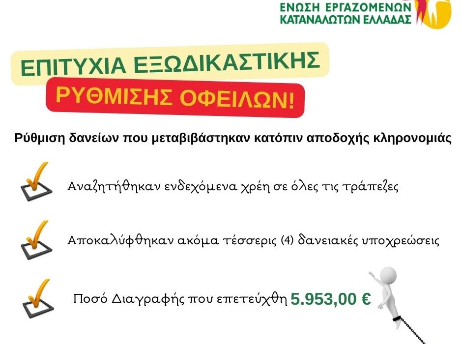Μεταβίβαση περιουσιακών στοιχείων vs οφειλών- Διαγραφή δανείου 5.953,00€