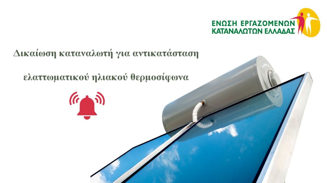 Δικαίωση καταναλωτή για αντικατάσταση ελαττωματικού ηλιακού θερμοσίφωνα