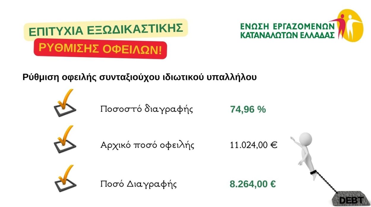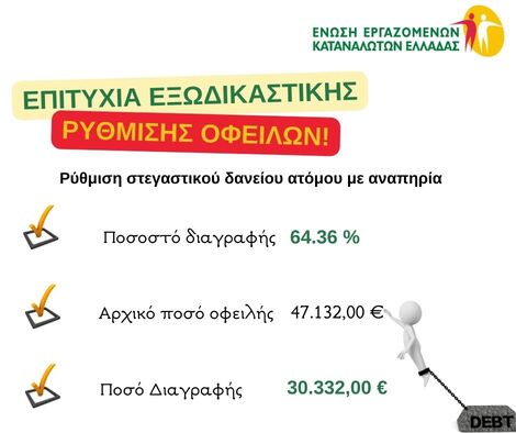 Νέα επιτυχία εξωδικαστικής Ρύθμισης: Διαγραφή δανείου 74,96%