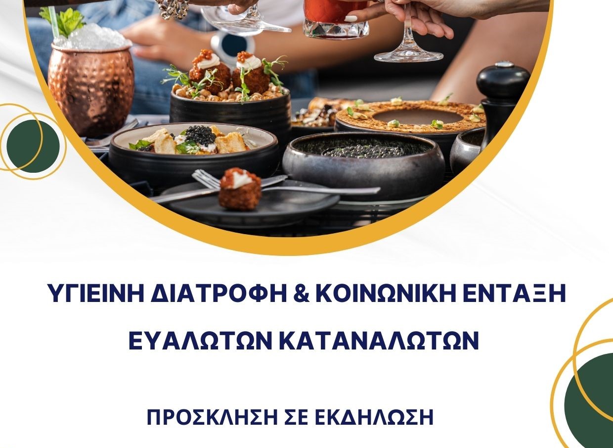 Η Ένωση Εργαζομένων Καταναλωτών Ελλάδας και o Δήμος Ελευσίνας, σας καλούν την Τρίτη 12 Νοεμβρίου και ώρα 18.00 σε υβριδική εκδήλωση με τίτλο Υγιεινή διατροφή & κοινωνική ένταξη ευάλωτων καταναλωτών.