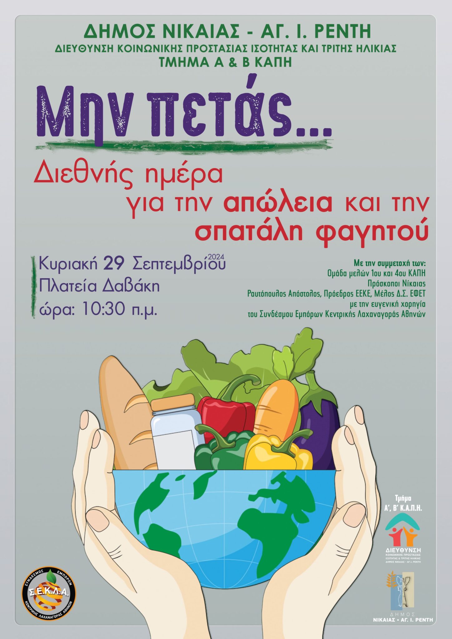 Apostolos Raftopoulos, President of the Union of Working Consumers of Greece, is the keynote speaker at the event of the Municipality of Nikaia – Ag. I. Rentis for International Day of Awareness of Food Loss and Waste on September 29th.